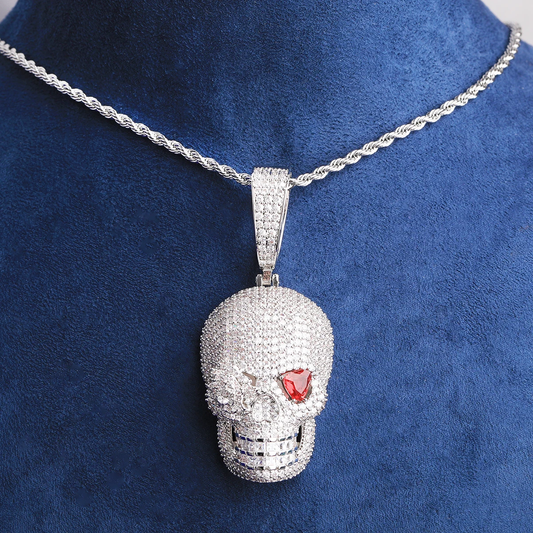 Bubble Letter Iced Out Rose Flower Red Eye Skull Necklace Pendant for Men Prong Setting 5A Cubic Zirconia Hip Hop Jewelry