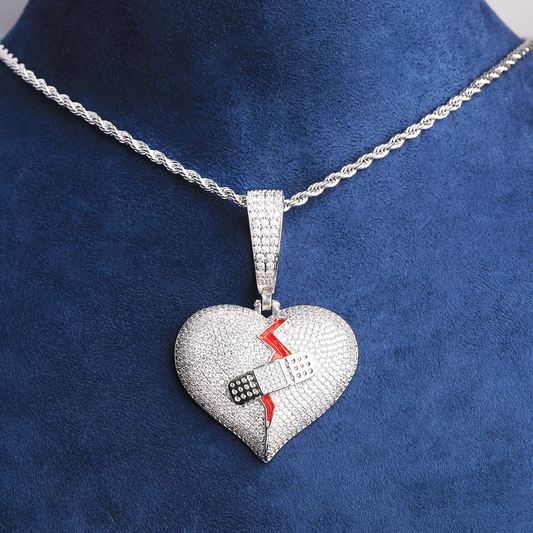 Bubble Letter Iced Out Wound Patch Broken Heart Necklace Pendant for Men Real Gold Plated 5A Cubic Zirconia Hip Hop Jewelry