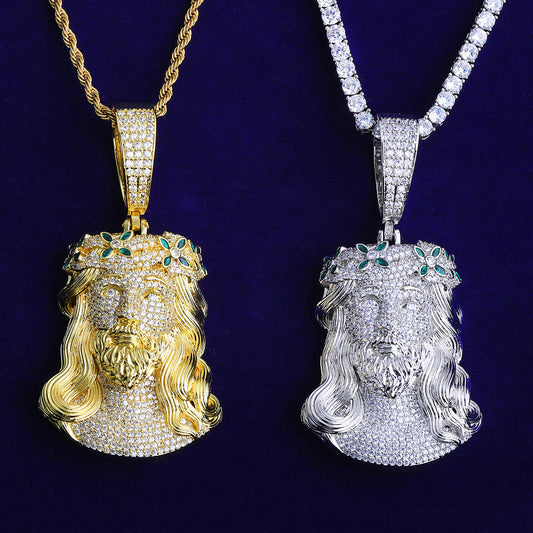 Bubble Letter Iced Out Green Flower Jesus Necklace Pendant for Men 5A Copper Cubic Zirconia Hip Hop Jewelry