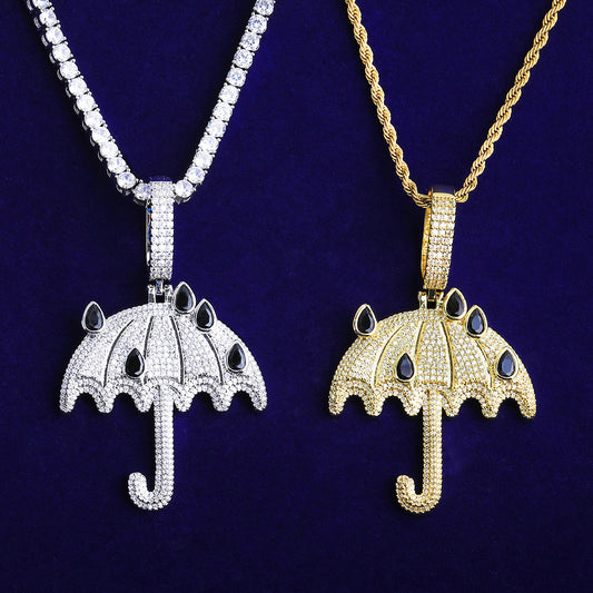 Bubble Letter Iced Out Umbralla Necklace Pendant for Men 5A Cubic Zirconia Gold Plated Hip Hop Jewelry