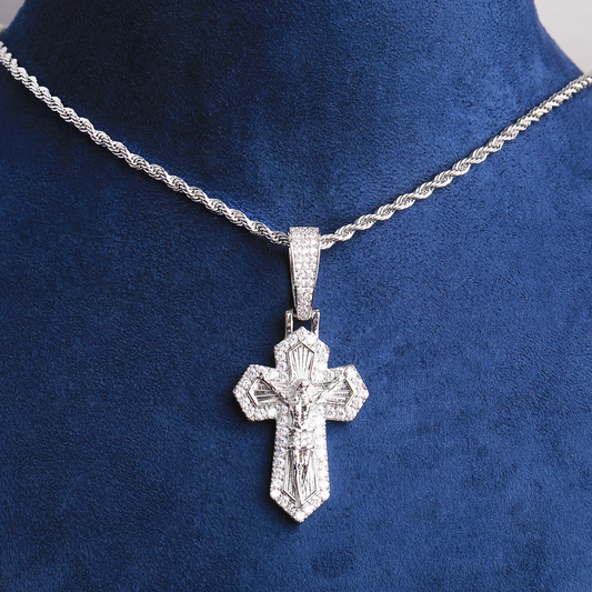 Bubble Letter Iced Out Jesus Cross Edge Necklace Pendant for Men Prong Setting 5A Cubic Zirconia Hip Hop Jewelry