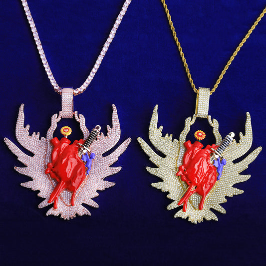 Bubble Letter Iced Out Blood Organ Arrow Wing Necklace Pendant Colgante Rompecorazones Oro Blanco Hip Hop Jewelry