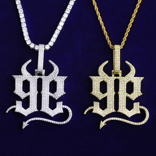 Bubble Letter Iced Out Big Gang Necklace Pendant for Men 5A Cubic Zirconia Gold Plated Hip Hop Jewelry