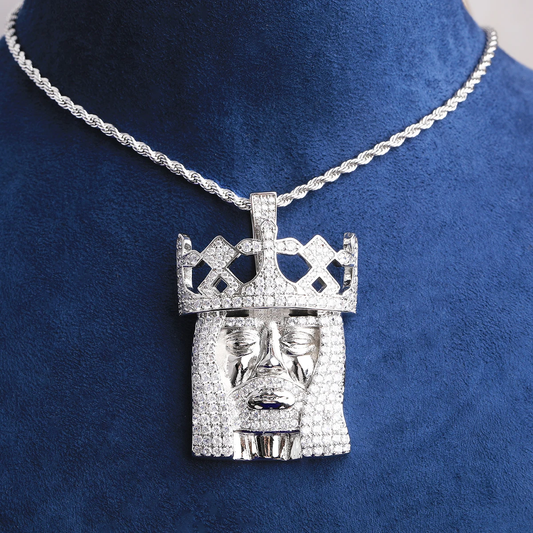 Bubble Letter Iced Out King Sword Crown Bail Necklace Pendant for Men Prong Setting 5A Cubic Zirconia Hip Hop Jewelry