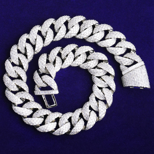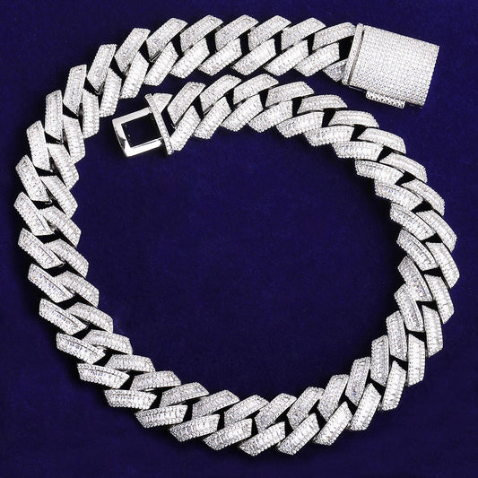 Bubble Letter 25mm Special Clasp Baguette Cuban Link Chain for Men 5A Cubic Zirconia Gold Plated Hip Hop Jewelry