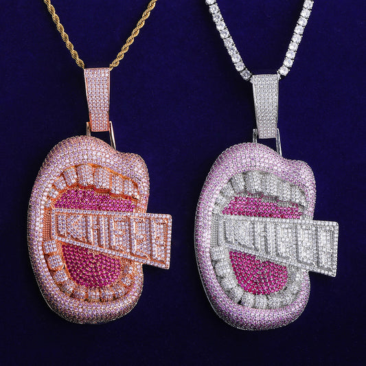 Bubble Letter Iced Out Big Mouth for Men Colgante Kheee Oro 5A Cubic Zirconia Copper Gold Plated Hip Hop Jewelry