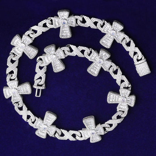 Bubble Letter Iced Out Cross Infinity Link Chain for Men 5A Cubic Zirconia Gold Plated Hip Hop Jewelry