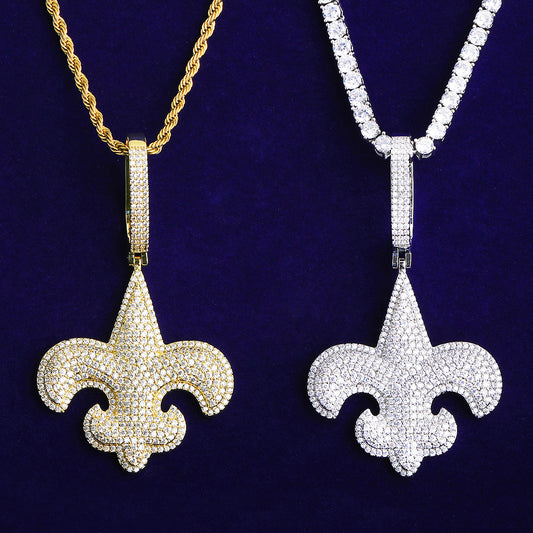 Bubble Letter Fleur-de-lis Iced Pendant for Men 5A Handset Cubic Zirconia Real Gold Plated Hip Hop Jewelry
