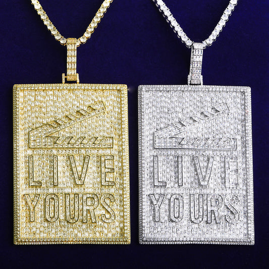 Bubble Letter Iced Out Big Live Yours Tag Necklace Pendant for Men 5A Cubic Zirconia Gold Plated Hip Hop Jewelry