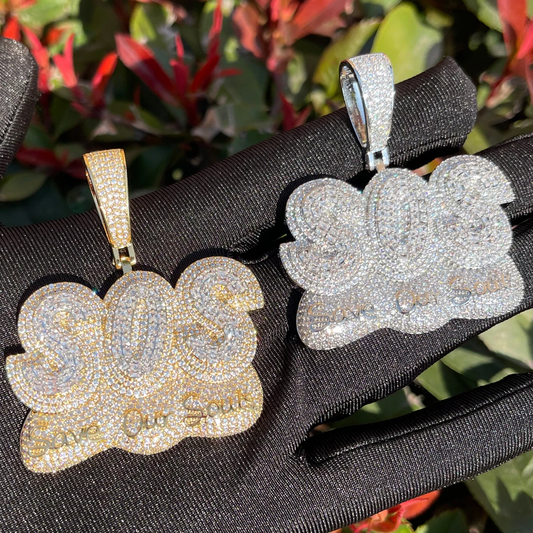 Bubble Letter Save Our Soul Pendant Iced Out Necklace for Men Prong Setting Real Copper Cubic Zirconia Hip Hop Jewelry