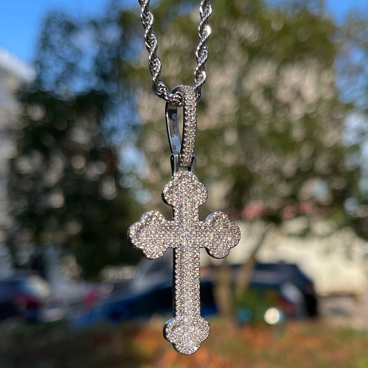 Bubble Letter Iced Out Cross Necklace for Men Prong Setting Pendant Charms Real Copper Hip Hop Jewelry