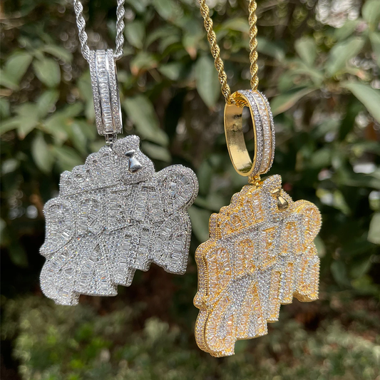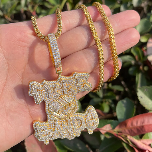 Bubble Letter Iced Out Free Bands Necklace Pendant for Men Real Gold Plated Cubic Zirconia Hip Hop Jewelry