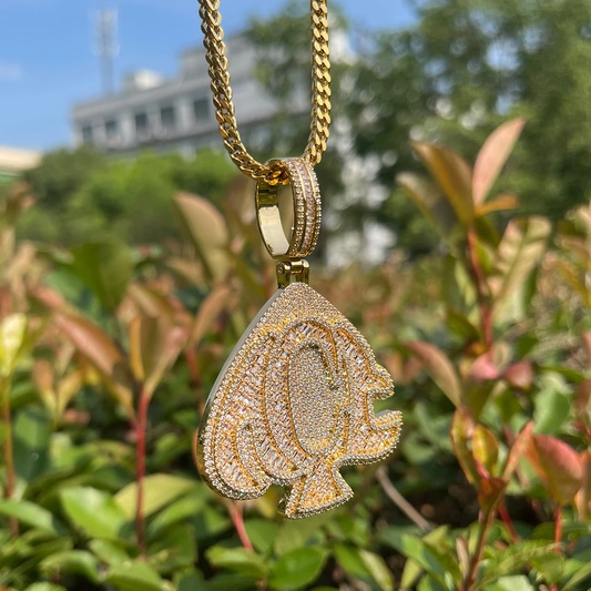 Bubble Letter Prong Setting Ace Necklace for Men Baguette Iced Out Pendant Real Gold Plated Hip Hop Jewelry