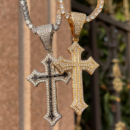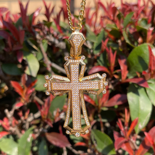 Bubble Letter Iced Out Cross Pendant Necklace for Men Prong Setting Bling Charms Real Gold Plated Hip Hop Jewelry
