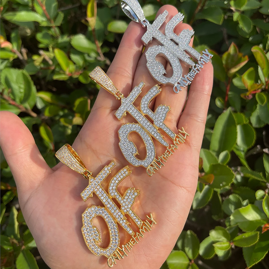 Bubble Letter Iced Ou Pendant Only The Family Necklace for Men Prong Setting Cubic Zirconia Hip Hop Jewelry