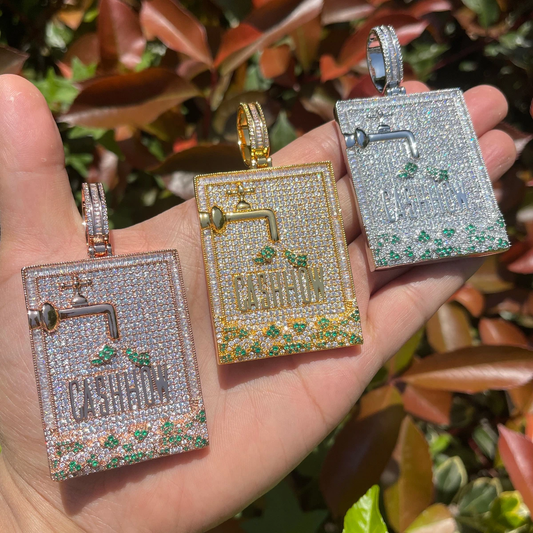 Bubble Letter Iced Out Necklace for Men Creative Cash Prong Pendant Real Gold Plated Hip Hop Jewelry
