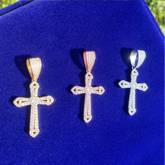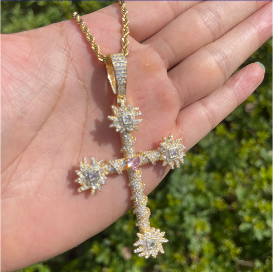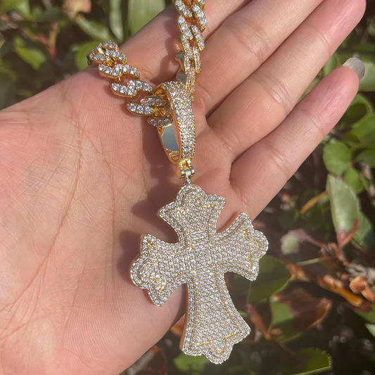Bubble Letter Iced Out Cross for Women Real Gold Plated Cubic Zirconia Hip Hop Jewelry