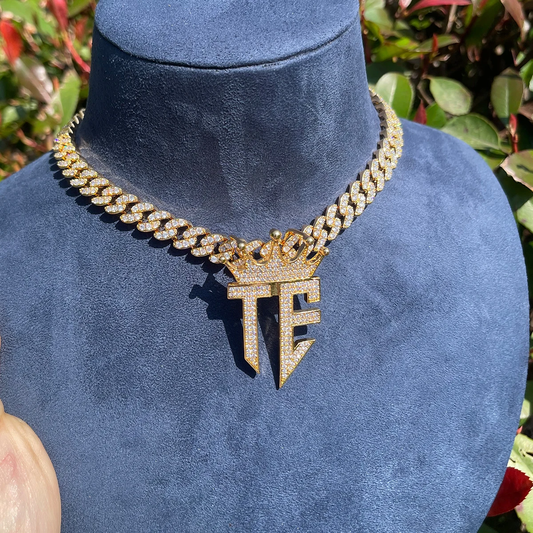 Bubble Letter Iced Out TE Necklace Pendant for Women Prong Cubic Zirconia Real Gold Plated Hip Hop Jewelry