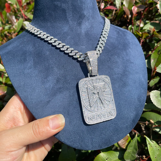 Bubble Letter Iced Out CT NATA Necklace Pendant for Men Real Gold Plated Hip Hop Jewelry