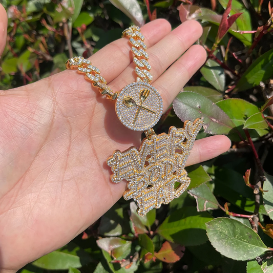 Bubble Letter Iced Out Necklace Pendant for Women Every Body Eats Charms Real Copper Cubic Zircona Gold Plated Hip Hop Jewelry