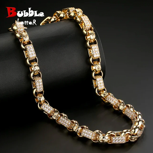 Bubble Letter GYPSY Ornate Patterned Belcher Necklace Choker for Men Studded Oblong Smooth Alternating Cuban Links Hip Hop Jewel