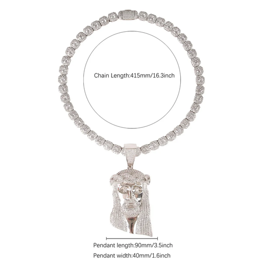 No Chian Religious Jesus Head Pendant Men's Hip Hop White Gold Plated Jewelry
