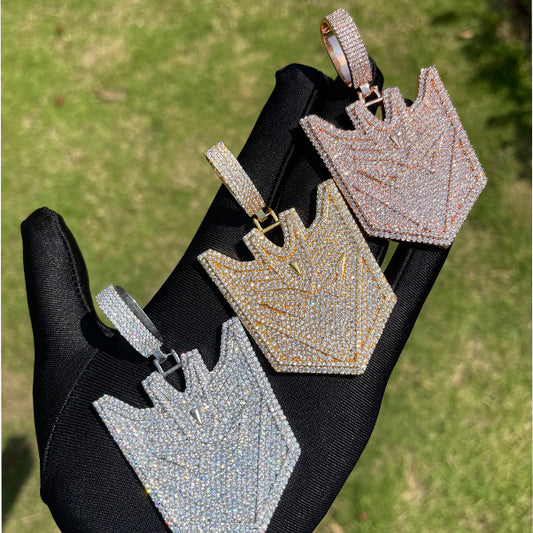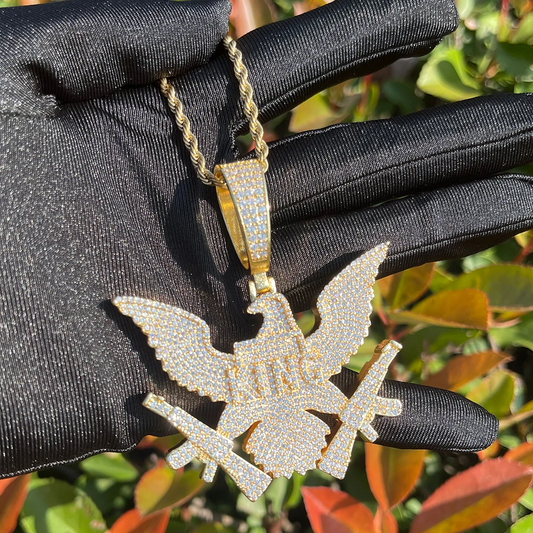 Bubble Letter Prong Necklace for Men Iced Out Eagle Gang Pendant Real Gold Plated Hip Hop Jewelry