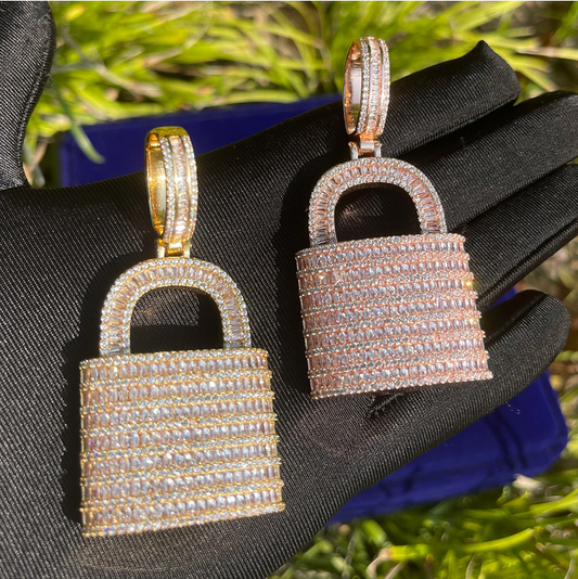 Bubble Letter Iced Out Lock Necklace Pendant for Women Real Gold Plated Prong Setting Copper Cubic Zirconia Hip Hop Jewelry
