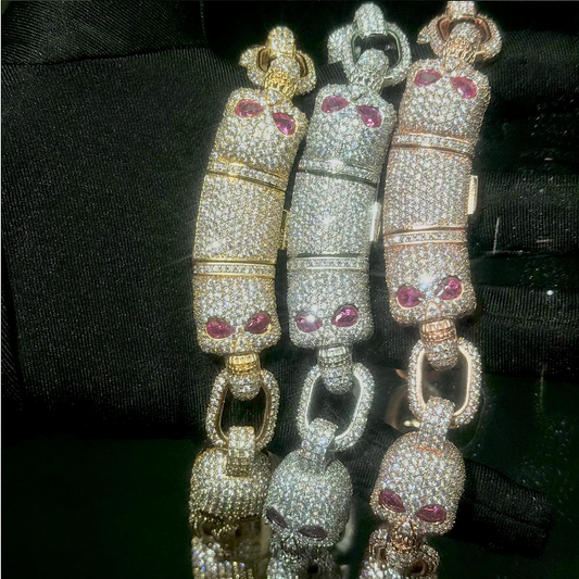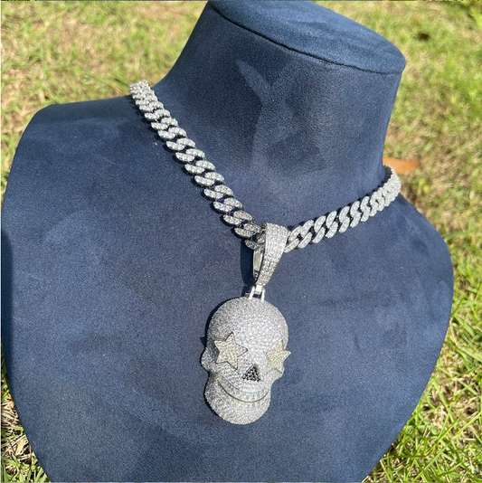 Bubble Letter Iced Out Skull Necklace for Men Cuban Link Chain Prong Cubic Zirconia Hip Hop Jewelry