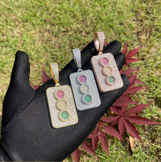 Bubble Letter Iced Out Traffic Light Necklace Pendant for Men Prong Setting Cubic Zirconia Real Gold Plated Hip Hop Jewelry