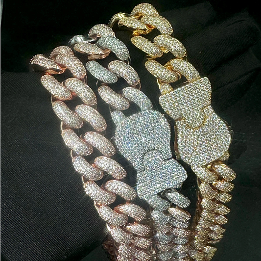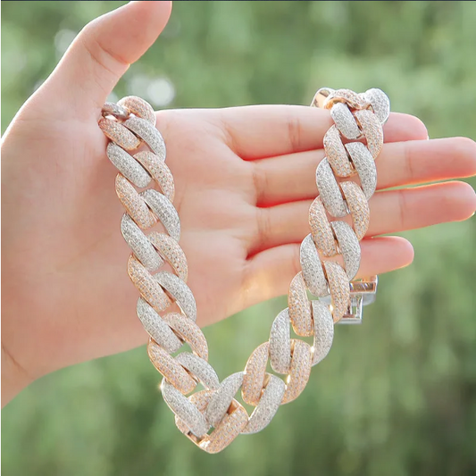 THE BLING KING Heavy 24mm Bubble Cuban Link Necklace For Men Micro Paved Cubic Zirconia Chain Deluxe Choker Rock Hip Hop Jewelry