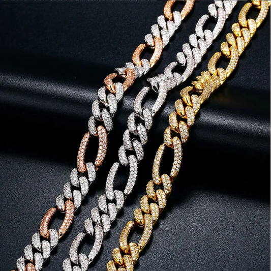 DUBSS Figaro Cuban Link Chain Men Necklace Real Gold Plated Hip Hop Zircon Real Copper Rock Fashion Jewelry