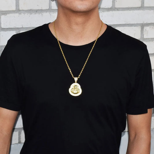 Religious Buddha Pendant Necklace Charms Gold Color Cubic Zircon Men's Hip Hop Jewelry