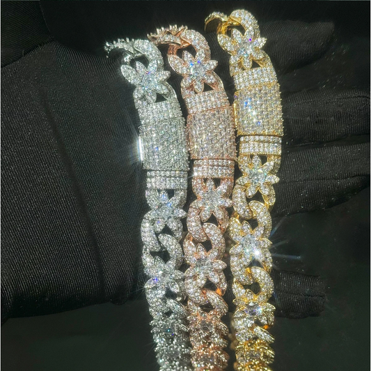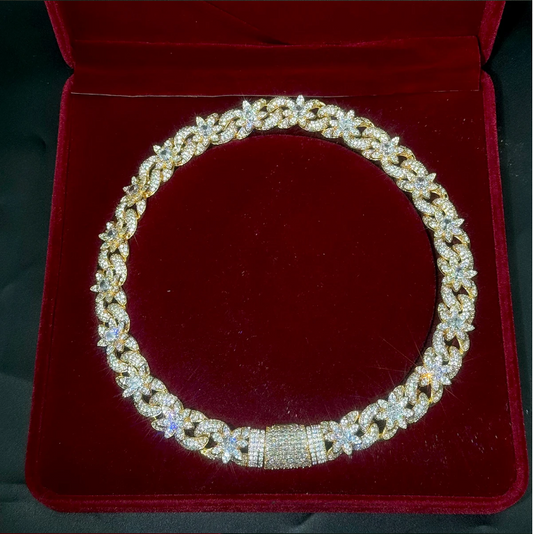 Bubble Letter Iced Out Flower Necklace Cuban Link Chain for Women Prong Setting Cubic Zirconia Hip Hop Jewelry