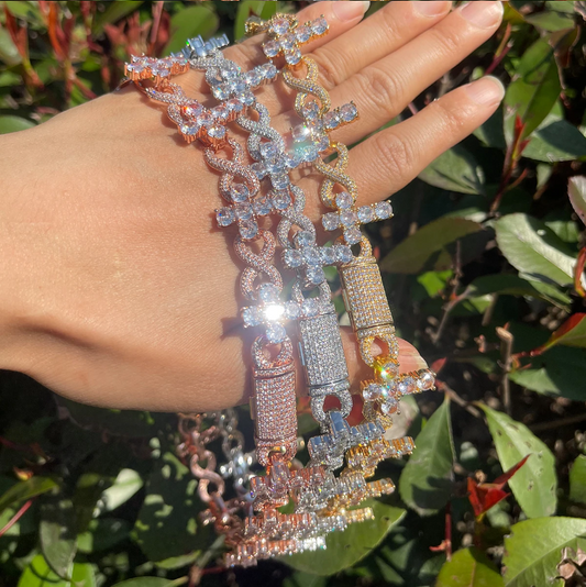 Bubble Letter Iced Out Prong Necklace for Women Cross Infinity Choker Cuban Link Chain Cubic Zirconia Hip Hop Jewelry