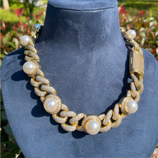 Bubble Letter Pearl Cuban Link Chain for Men Prong Necklace Choker Real Copper Cubic Zirconia Hip Hop Jewelry