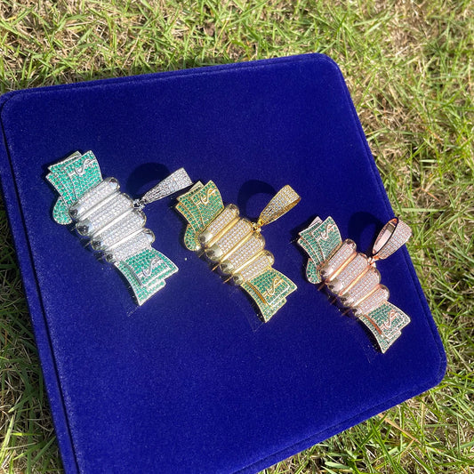 Bubble Letter Iced Out Hand Dollar Money Necklace Pendant for Men Prong Setting Real Gold Plated Cubic Zirconia Hip Hop Jewelry
