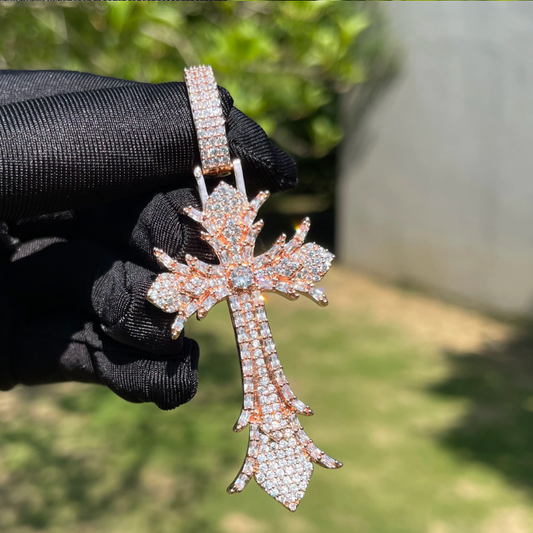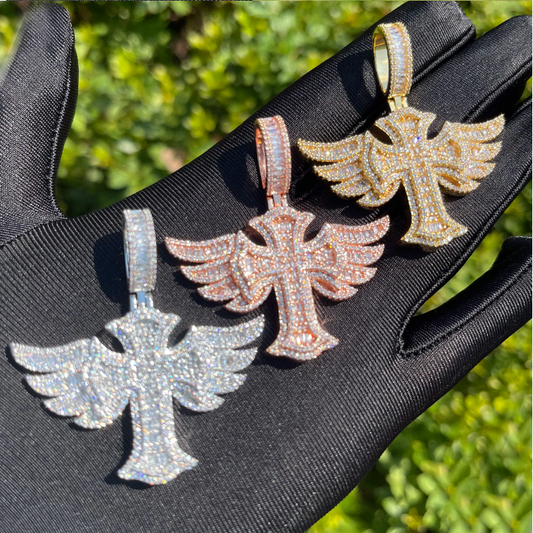 Bubble Letter Iced Out Cross Angle Wing Necklace Pendant for Men Real Gold Plated Hip Hop Jewelry