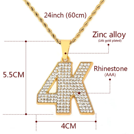 Hip Hop 4K Letters Pendant Necklace Gold Color Charm Bling Iced Full Rhinestone Crystal Men's Rock Jewelry Gift Rope Chain