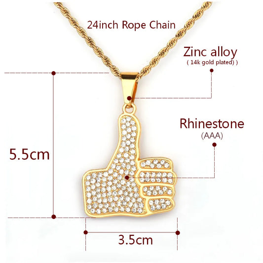 Personality Thumbs Pendant Necklace Charm Alloy Gold Color Iced Rhinestone BlingBling Men's Hip Hop Jewelry Chain
