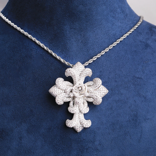 Bubble Letter Iced Out Rose Flower Cross Necklace Pendant for Men Prong Setting 5A Cubic Zirconia Hip Hop Jewelry