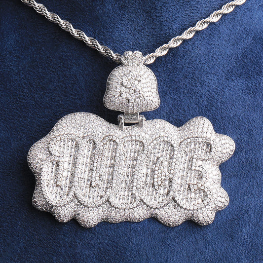 Bubble Letter Iced Out Juice Money Bag Bail Necklace Pendant for Men Real Gold Plated 5A Cubic Zirconia Hip Hop Jewelry