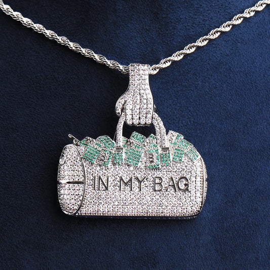 Bubble Letter Iced Out Silver Green In My Bag Necklace Pendant for Men Real Gold Plated 5A Cubic Zirconia Hip Hop Jewelry