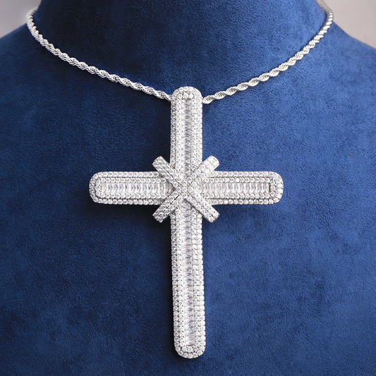 Bubble Letter Iced Out Super Big Cross Necklace Pendant for Men Prong Setting 5A Cubic Zirconia Hip Hop Jewelry