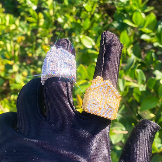 Bubble Letter Iced Out Square Ring for Men Real Gold Plated Cubic Zirconia Hip Hop Jewelry