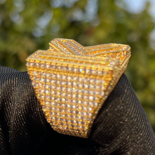 Bubble Letter Iced Out Templar Ring for Men Real Gold Plated Cubic Zirconia Hip Hop Jewelry