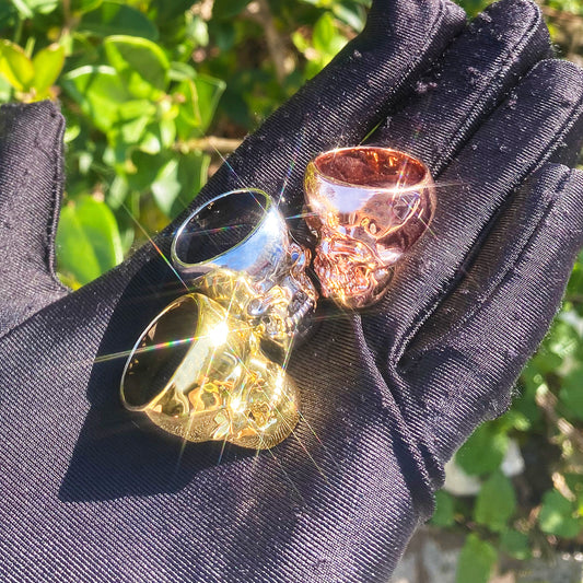 Bubble Letter Skull Ring for Men Real Copper Gold Plated Hip Hop Jewelry