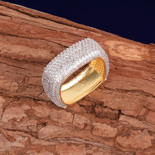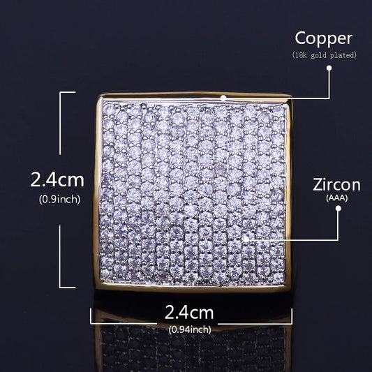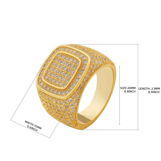 Bubble Letter Iced Double Square Men Ring Real Gold Plated Hip Hop Jewelry