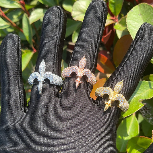 Bubble Letter Iced Out Men Ring Prong Cubic Zirconia Real Gold Plated Hip Hop Jewelry The Fleur De Lys