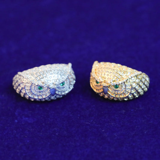 Bubble Letter Owl Iced Out Ring Men Real Gold Plated Brass Cubic Zircon Hip Hop Jewelry